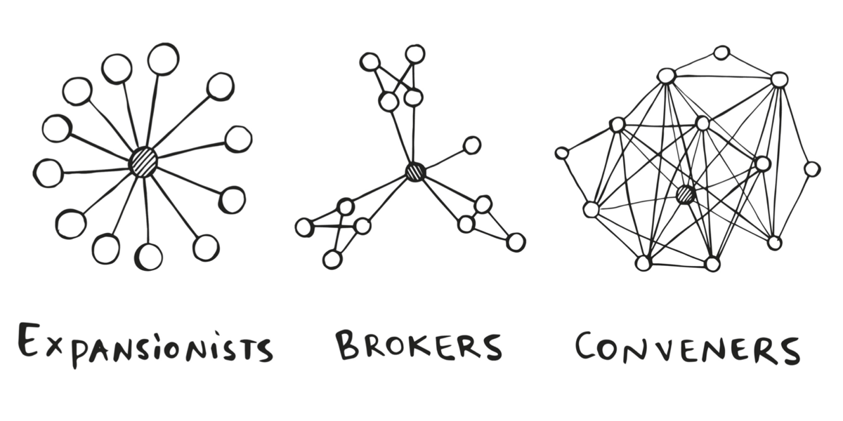 I've recently been reading Social Chemistry: Decoding the Patterns of Human Connection. The author, Yale professor Marissa King, details the ways in which we grow and maintain our networks, and the different kinds of patterns that have emerged in her research. King describes three different kinds of networkers—expansionists, brokers, and conveners—and describes how the networking patterns of these types shape networks in different ways and lead to different kinds of networking outcomes. Read the book to learn more, or head to Assess Your Network for immediate gratification.