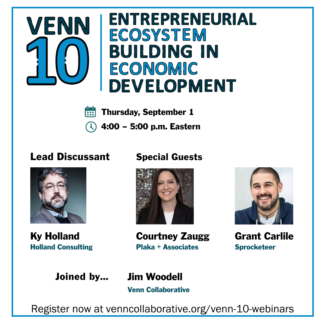 Explore with us the ways in which Entrepreneurial Ecosystem Building and Economic Development are shaping impact work this year. What is entrepreneurship-led economic development? How is it changing the field of economic development? What does it mean for entrepreneurs? Join Venn Collaborative's